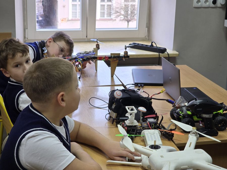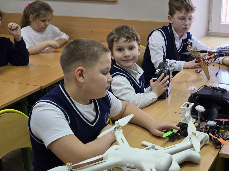 Uczniowie klas 1–4 poznali budowę drona oraz dowiedzieli się, jak działają te urządzenia i do czego są wykorzystywane w różnych dziedzinach życia – między innymi w fotografii i filmie, ratownictwie czy badaniach naukowych. Była to ciekawa okazja, aby w przystępny sposób przybliżyć najmłodszym świat informatyki, robotyki oraz współczesnych technologii.