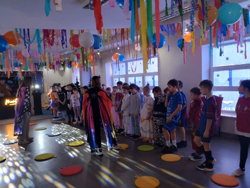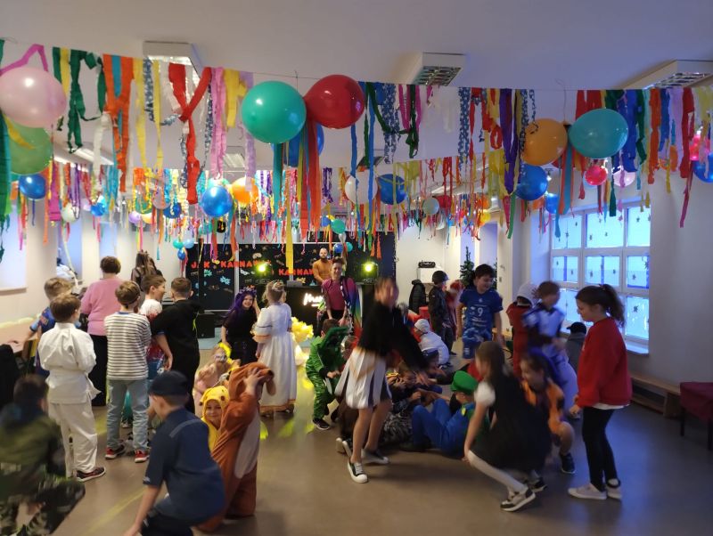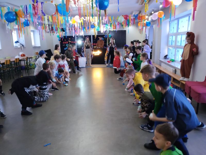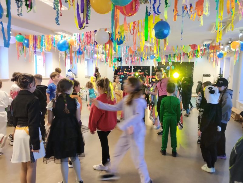 O dobrą atmosferę zadbała profesjonalna oprawa muzyczna. Nie brakowało tańców, konkursów i wspólnych zabaw, które integrowały uczniów i wywoływały wiele uśmiechów. Energia najmłodszych uczestników udzielała się wszystkim obecnym, a radosny klimat towarzyszył nam od pierwszych do ostatnich minut wydarzenia.