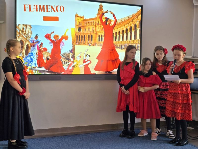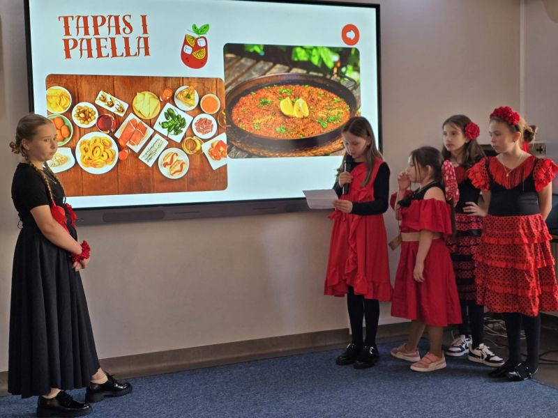 Uczniowie zadbali także o kulinarną odsłonę wydarzenia – na stołach pojawiły się regionalne przysmaki i dania, które można było wspólnie degustować. Całość uzupełniły prezentacje multimedialne, quizy, zabawy językowe oraz warsztaty. Dzięki nim uczestnicy mogli sprawdzić swoją wiedzę, poznać ciekawostki o różnych krajach i nauczyć się podstawowych zwrotów w obcych językach.