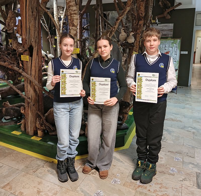 26 lutego 2026 r. uczniowie klasy ósmej – Gabriela Opolska, Patrycja Sienkiewicz oraz Jakub Leśniewski – wzięli udział w etapie powiatowym konkursu wiedzy ekologicznej „Różnorodność biologiczna i formy ochrony przyrody w Polsce”, który odbył się w siedzibie Wigierski Park Narodowy, w Wigierskim Parku Narodowym.