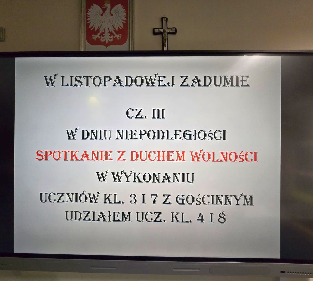 Mgła wspomnień i blask niepodległości spotkały się tego wieczoru w czterech odsłonach artystycznego przeżycia. W programie Poetyckich Zaduszek, przygotowanych przez uczniów klasy 3 – sentencje i wiersze splecione z zadumą nad tajemnicą Wszystkich Świętych i Dnia Zadusznego, gdy pamięć o tych, którzy odeszli, staje się modlitwą wypowiedzianą słowem.